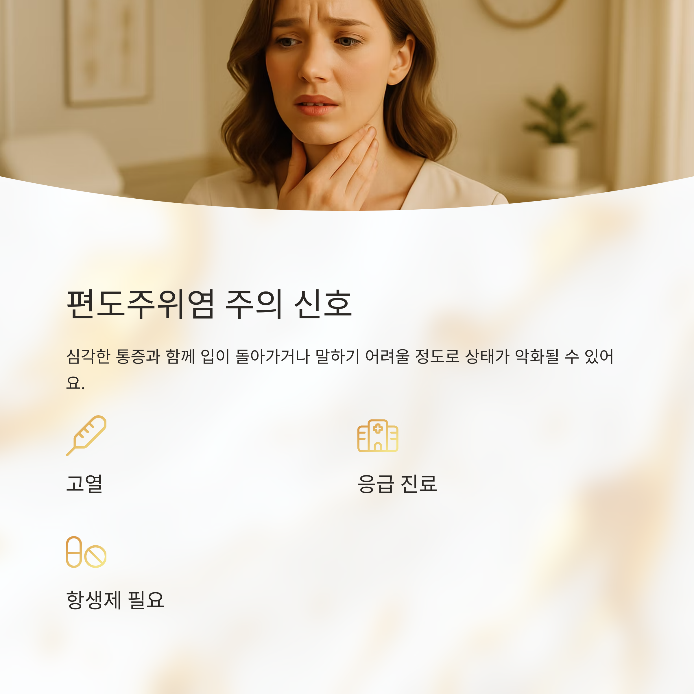 편도선이 붓거나 고름이 생기는 편도염도 침 삼키는 것을 어렵게 만들어요. 한쪽 목만 아프거나 귀까지 통증이 이어진다면 편도염일 가능성이 더 높아요. 심한 경우 고열과 전신 피로감, 입을 벌리기 어려운 증상까지 나타날 수 있으니 주의해야 해요. 혹시 편도주위염일 경우에는 더 심각한 통증과 함께 입이 돌아가거나 말하기 어려울 정도로 상태가 악화될 수 있어요. 이런 증상이 나타나면 빨리 병원을 찾는 게 중요하답니다!