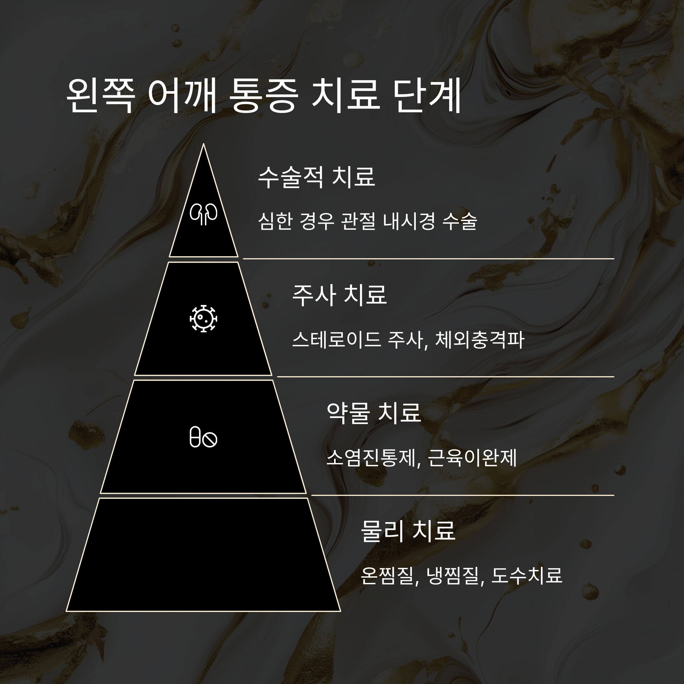 왼쪽 어깨 통증 치료는 단계별로 진행돼요. 먼저, 비수술적 치료를 시도해 보는 거죠. 냉찜질이나 온찜질, 소염진통제 복용, 물리치료 등을 통해 통증을 완화하고 기능을 회복할 수 있어요. 도수치료도 효과적일 수 있고요.