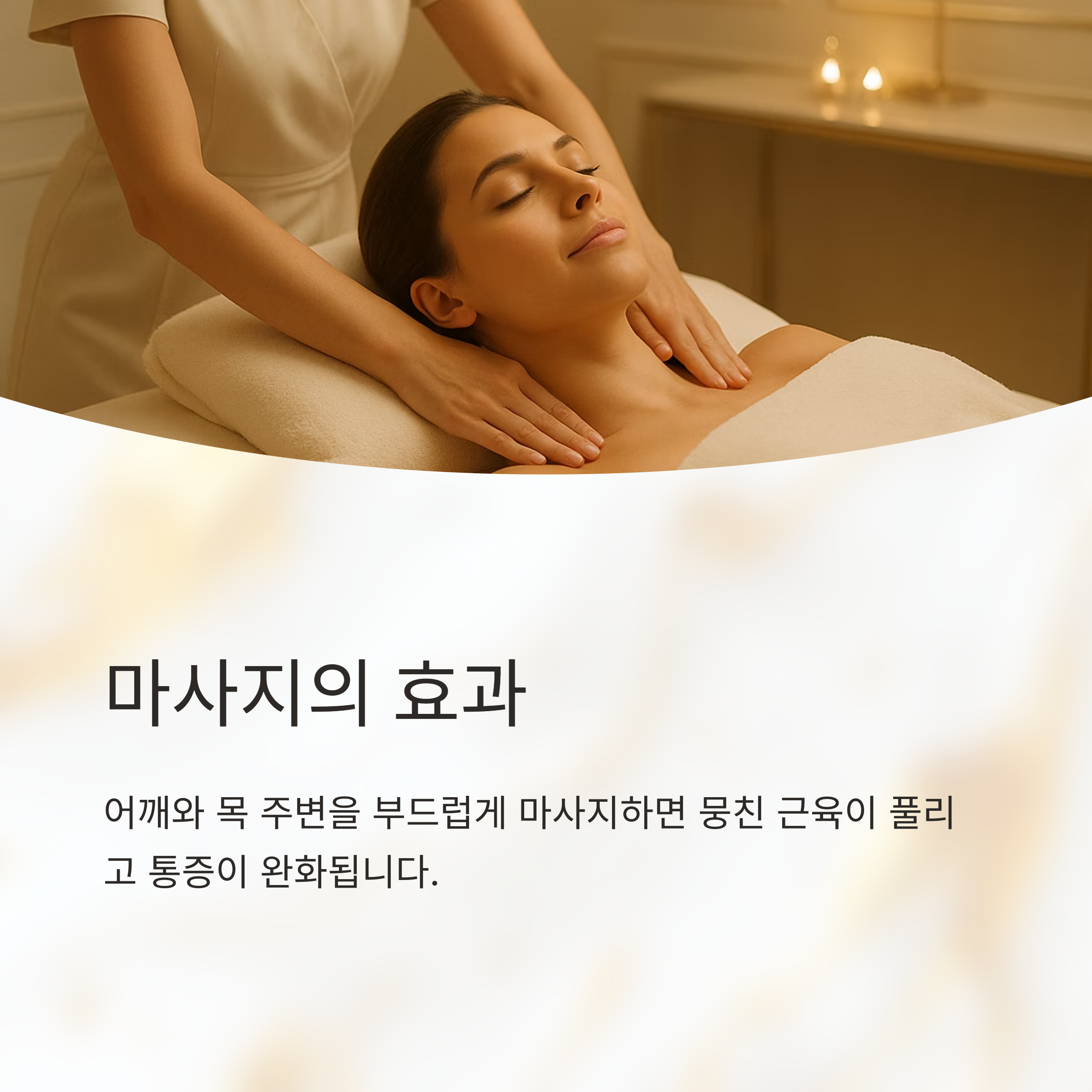 그리고 가볍게 스트레칭을 해보세요. 목을 좌우로 천천히 돌리고, 어깨를 앞뒤로 둥글게 돌리는 간단한 동작만으로도 긴장이 풀리는 것을 느낄 수 있을 거예요. 마사지도 효과적이에요. 어깨와 목 주변을 부드럽게 마사지하면 뭉친 근육이 풀리고 통증이 완화될 거예요.