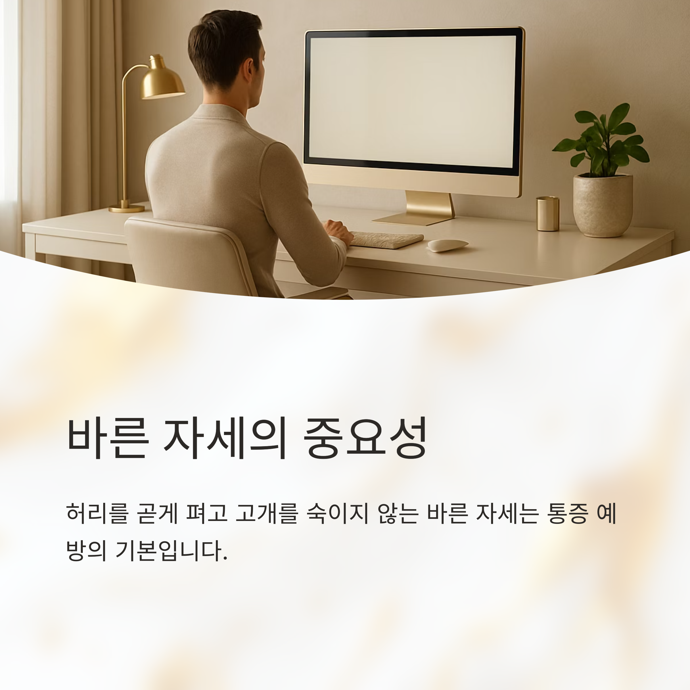 목 어깨 통증 원인을 예방하고 관리하기 위해서는 평소 생활 습관을 개선하는 것이 중요해요. 가장 중요한 것은 바른 자세를 유지하는 거예요. 앉을 때는 허리를 곧게 펴고, 스마트폰이나 컴퓨터를 사용할 때는 고개를 숙이지 않도록 주의해야 해요. 모니터 높이도 눈높이에 맞춰 조절하는 것이 좋고요.