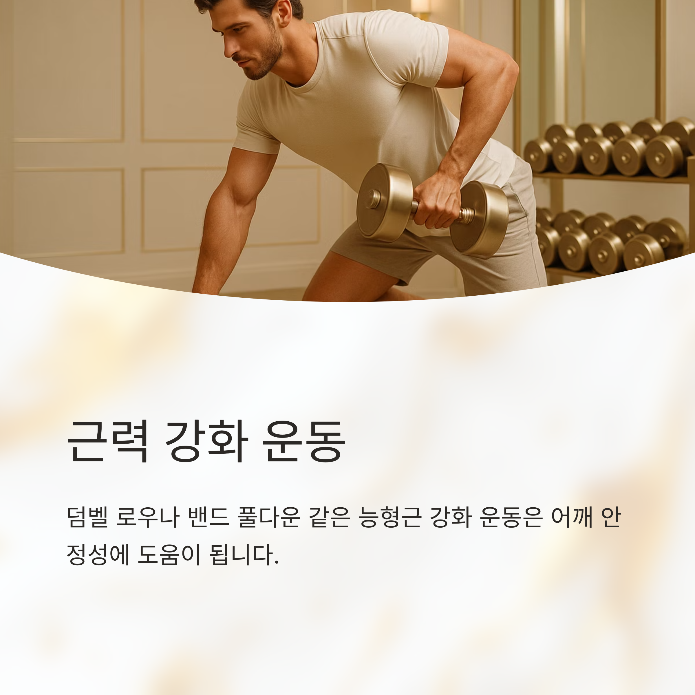 덤벨 로우나 밴드 풀다운 같은 능형근 강화 운동도 효과적이고요. 벽 밀기나 로우 앤 로테이션과 같은 견갑골 안정화 운동도 도움이 됩니다. 운동은 무리하지 않는 범위 내에서 천천히, 꾸준히 하는 것이 중요해요. 처음에는 짧은 시간으로 시작해서 점차 시간을 늘려가는 것이 좋습니다. 그리고 자신에게 맞는 운동 강도를 찾는 것이 중요해요.