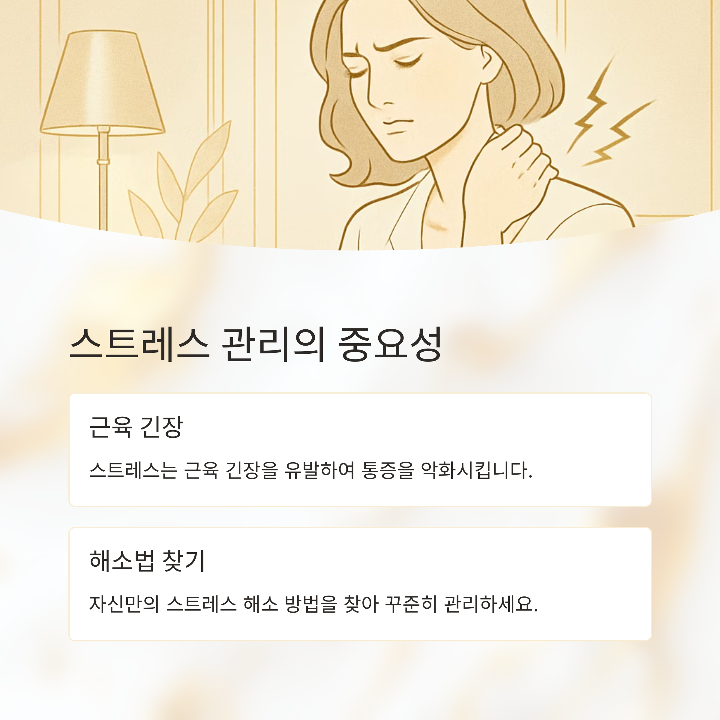 수면 시간이 부족하면 근육이 제대로 회복되지 않아 통증이 악화될 수 있거든요. 마지막으로 스트레스 관리도 중요해요. 스트레스는 근육 긴장을 유발하여 통증을 악화시키므로, 자신만의 스트레스 해소 방법을 찾아 꾸준히 관리하는 것이 중요합니다.