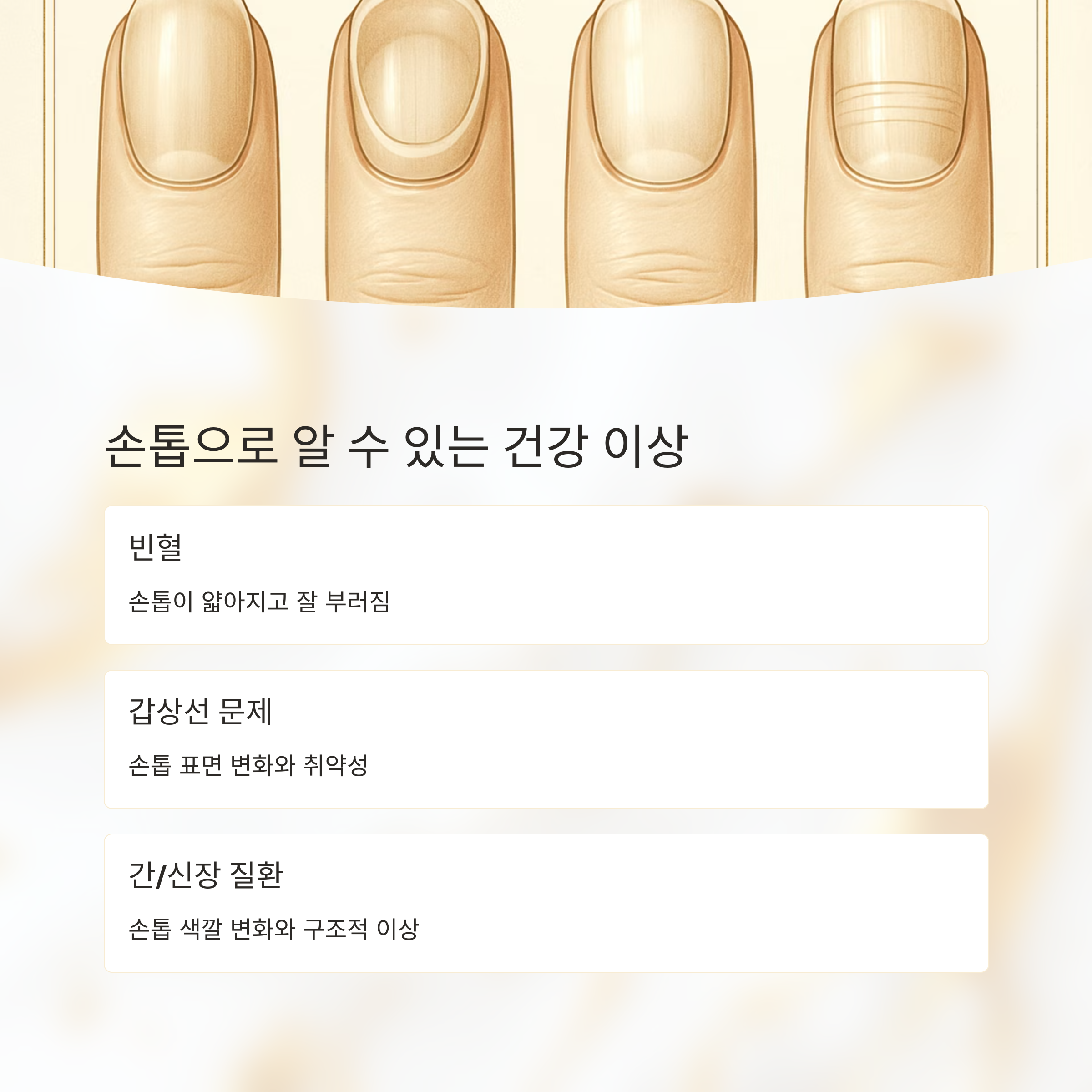 손톱은 단순히 손가락 끝을 보호하는 단단한 덮개가 아니에요. 마치 작은 거울처럼 우리 몸속 건강 상태를 비춰주는 중요한 지표거든요. 손톱의 색깔, 두께, 모양 등의 미세한 변화는 빈혈, 갑상선 문제, 심지어는 간이나 신장 질환의 초기 신호일 수도 있다는 사실! 예전에 저는 야근과 스트레스 때문에 손톱이 얇아지고 잘 부러지는 것을 경험했어요.