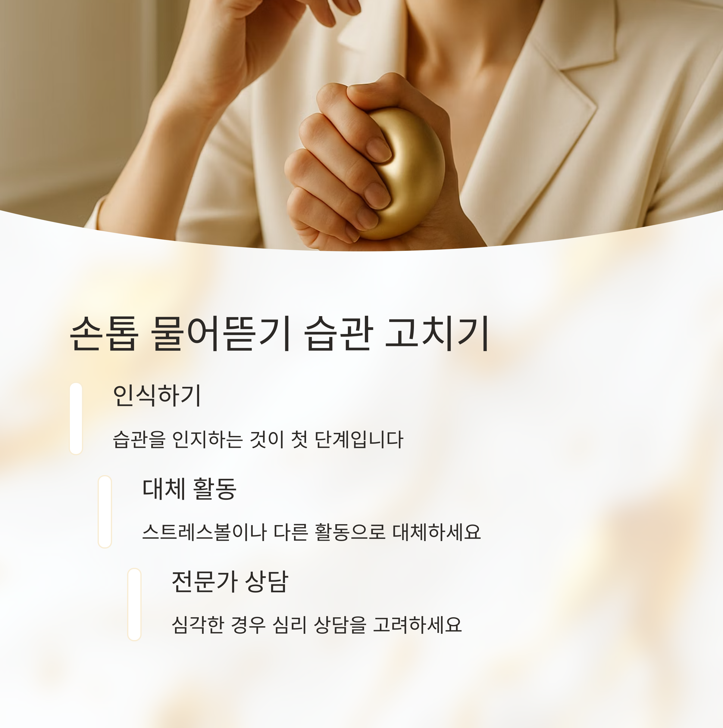 아, 그리고 생각보다 중요한 게 있는데요. 손톱을 도구처럼 사용하는 습관, 예를 들어 뚜껑을 따거나 물건을 뜯는 행위 같은 것도 손톱에 무리가 갈 수 있으니 자제하는 게 좋아요. 작은 습관 하나하나가 손톱 건강에 큰 영향을 미친다는 사실, 잊지 마세요!