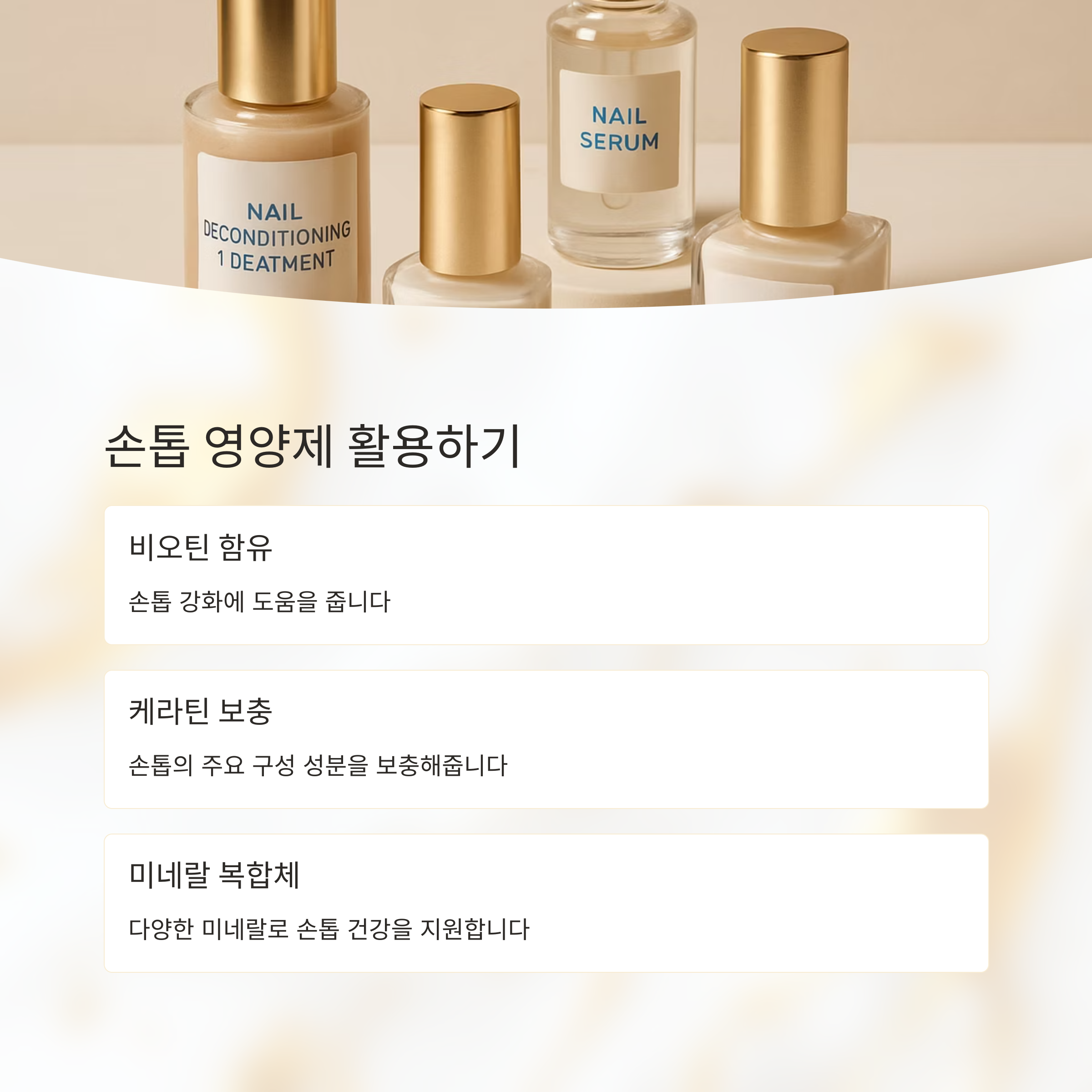 손톱 갈라짐 관리, 어렵지 않아요. 오늘부터 하나씩 실천해보면 분명 도움이 될 거예요. 이 글이 여러분의 건강한 손톱 관리에 도움이 되었기를 바랍니다. 모두 건강하고 아름다운 손톱을 가지길 바라며! 궁금한 점이나 더 필요한 정보가 있으면 언제든지 댓글 남겨주세요.