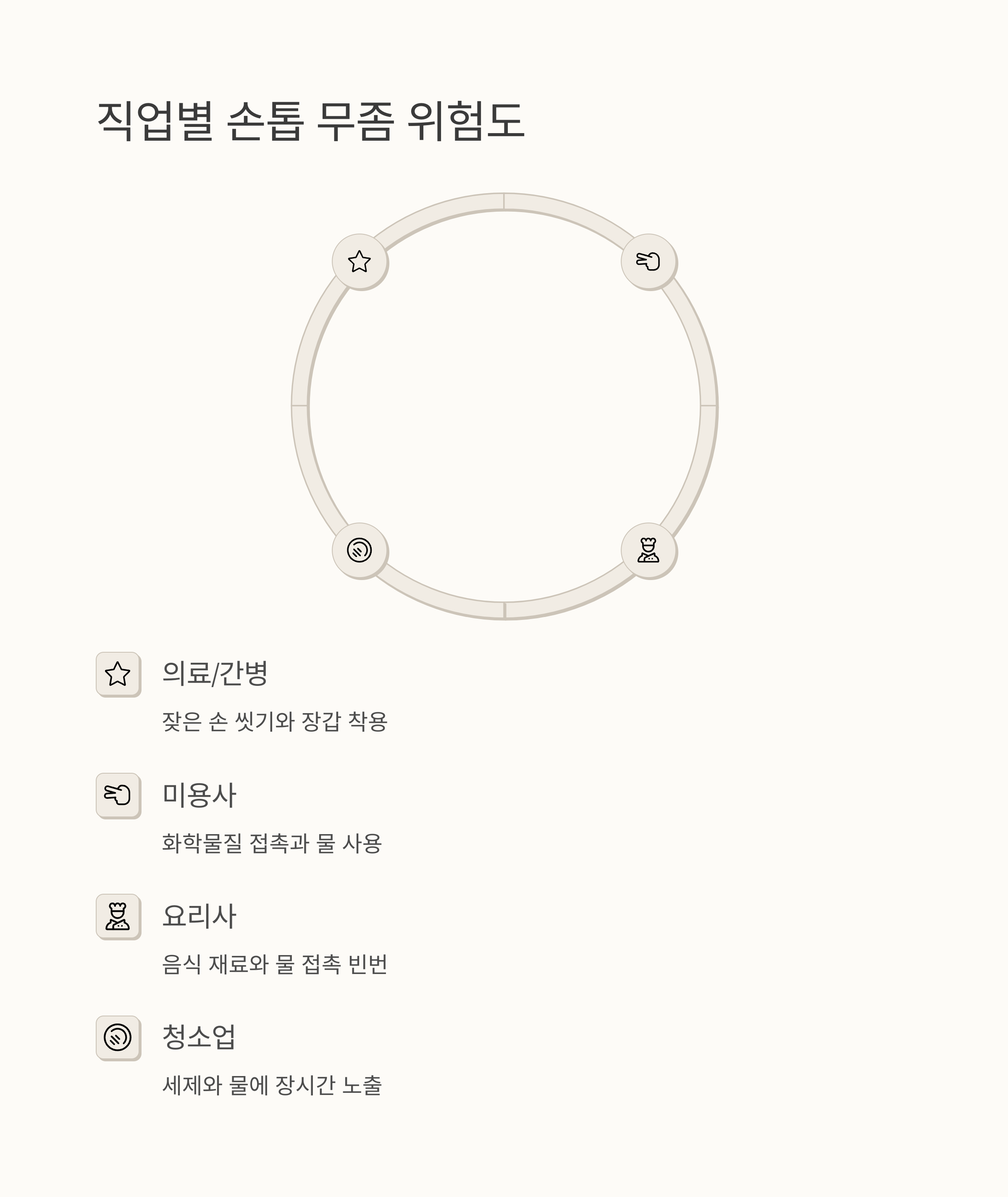 손톱을 뜯으면 큐티클이 손상되면서 곰팡이가 침투하기 쉬운 통로가 만들어지거든요. 또, 손을 씻은 후 물기를 제대로 닦지 않으면 손톱 밑에 수분이 남아 감염 위험이 높아집니다. 네일아트를 자주 하거나, 손을 많이 사용하는 직업(간병, 미용, 요리 등)에 종사하는 분들도 주의해야 합니다. 깨끗한 손 유지, 정말 중요하죠!