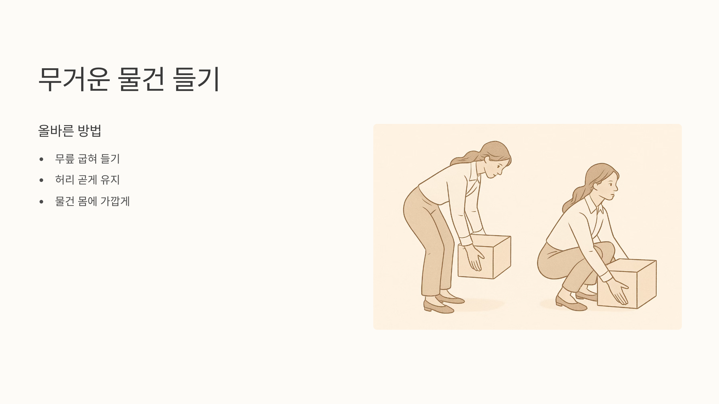 어떤 분은 갑자기 심한 통증을 느끼기도 하고, 어떤 분은 서서히 증상이 나타나기도 해요. 자신의 증상을 잘 파악하는 것이 중요하겠죠? 혹시 허리가 자주 아프거나 다리가 저리고 힘이 빠진다면 병원에 가서 정확한 진단을 받는 게 좋아요.