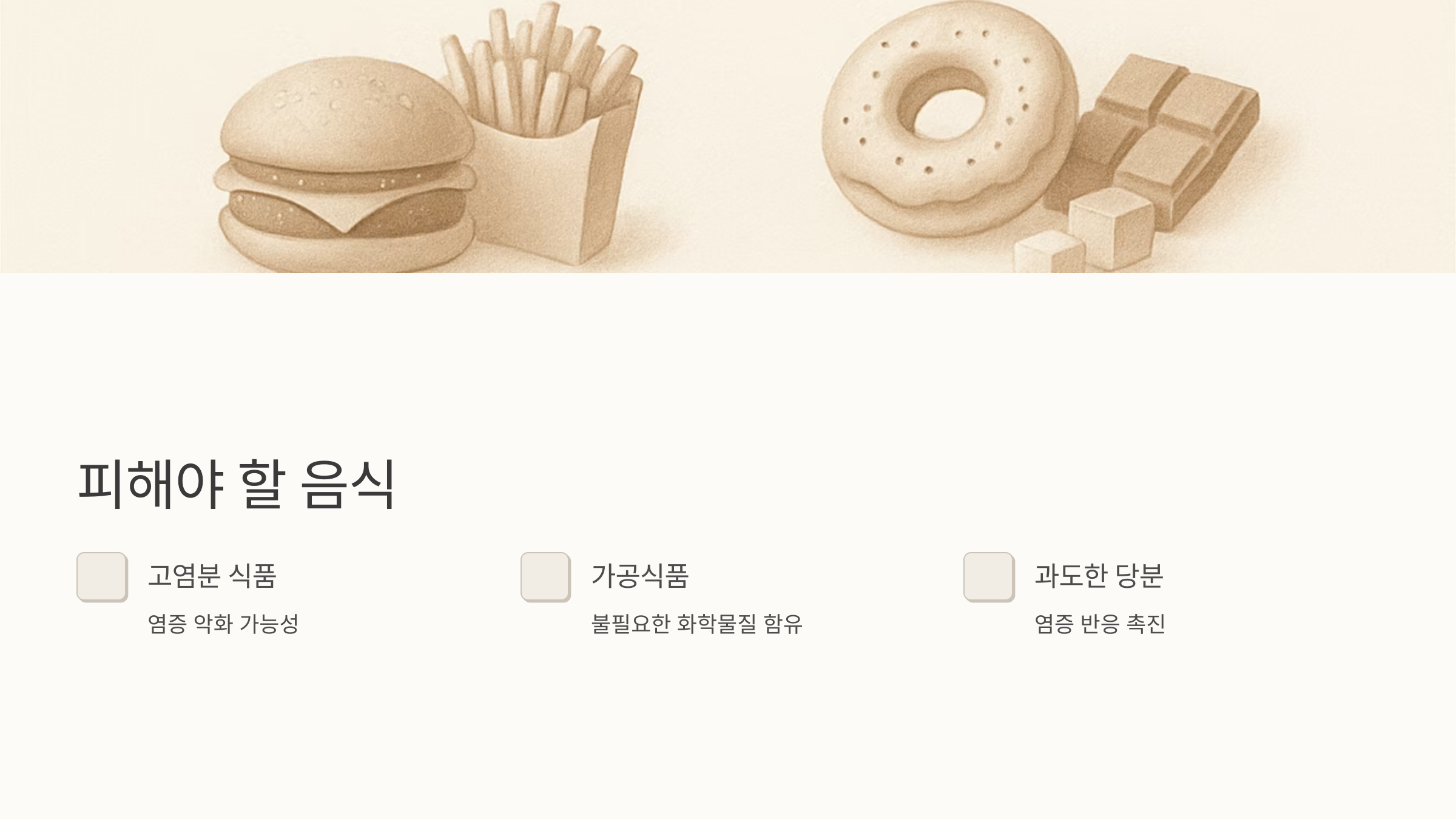 칼슘과 마그네슘은 뼈 건강에 필수적인 영양소이며, 항산화 물질이 풍부한 채소와 과일도 섭취하면 도움이 됩니다. 충분한 수분 섭취도 잊지 마세요. 반대로, 염분이 많거나 가공식품, 과도한 당분 섭취는 염증을 악화시킬 수 있으니 주의해야 합니다.