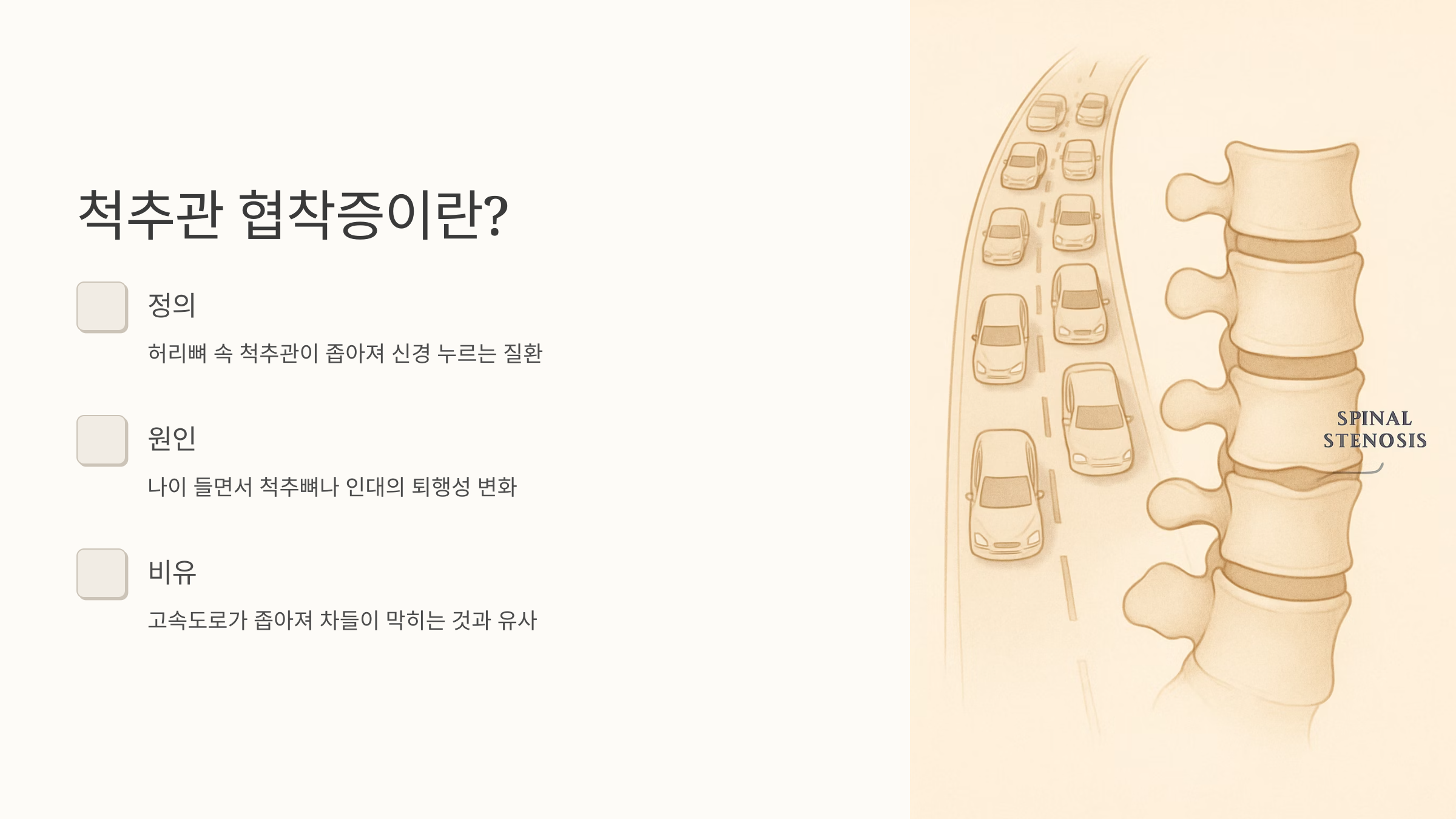 1. 척추관 협착증, 무엇일까요?