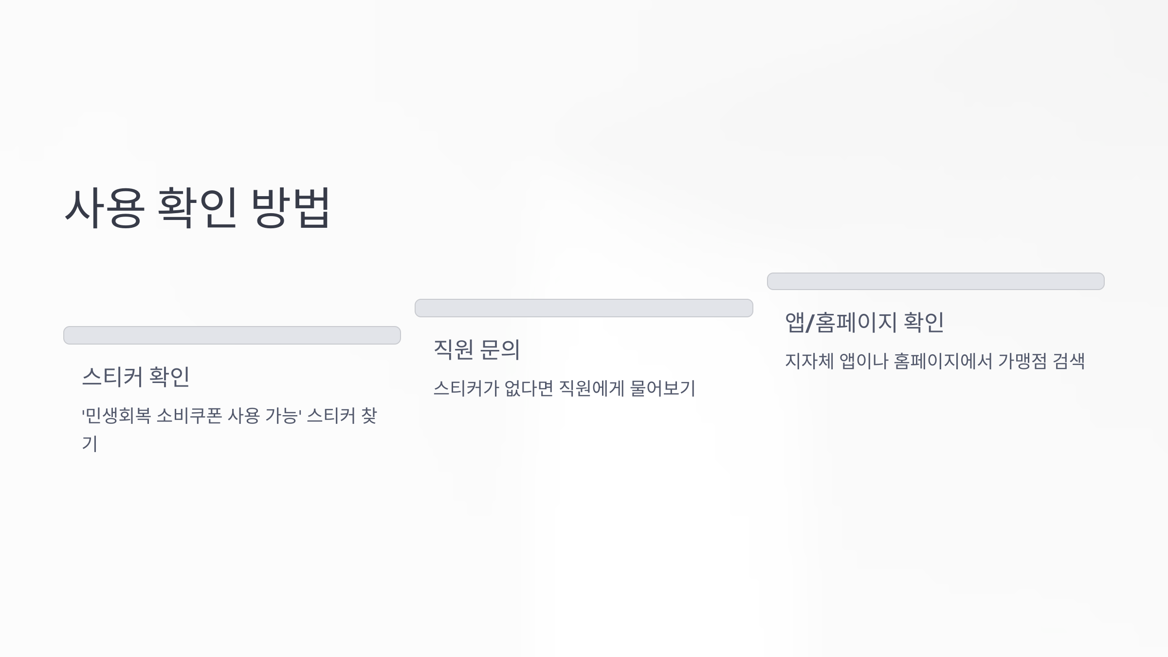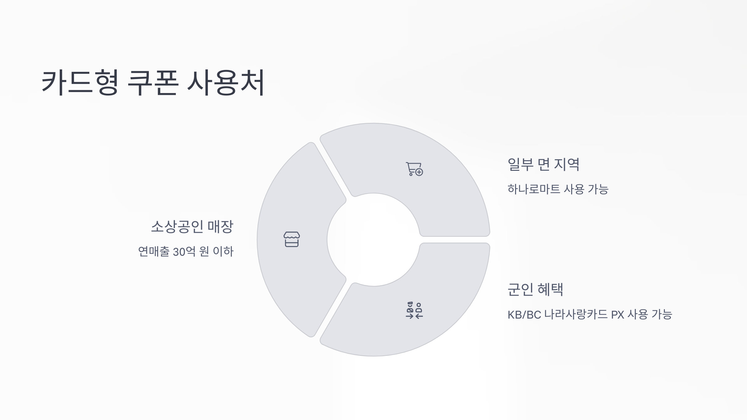 사용 가능한 곳을 확인하는 방법은 간단해요! 지역사랑상품권은 앱이나 지자체 홈페이지에서 가맹점을 검색하면 된답니다. 카드형 쿠폰은 결제 시 자동으로 차감되고, 사용 알림이 와요.