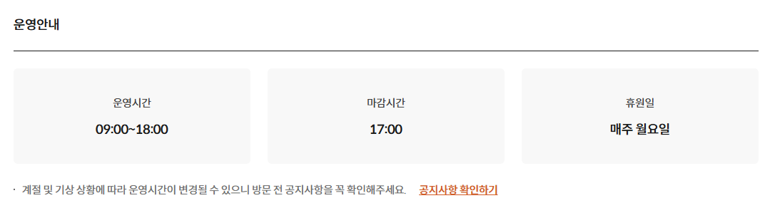화담숲은 화요일부터 일요일까지 오전 9시부터 오후 6시까지 운영하고, 입장은 오후 5시까지 가능해요. 월요일은 휴원이니 방문 전에 꼭 확인해 주세요. 날씨나 계절에 따라 운영 시간이 조금 바뀔 수도 있으니, 홈페이지 공지사항을 꼭 확인하는 센스!